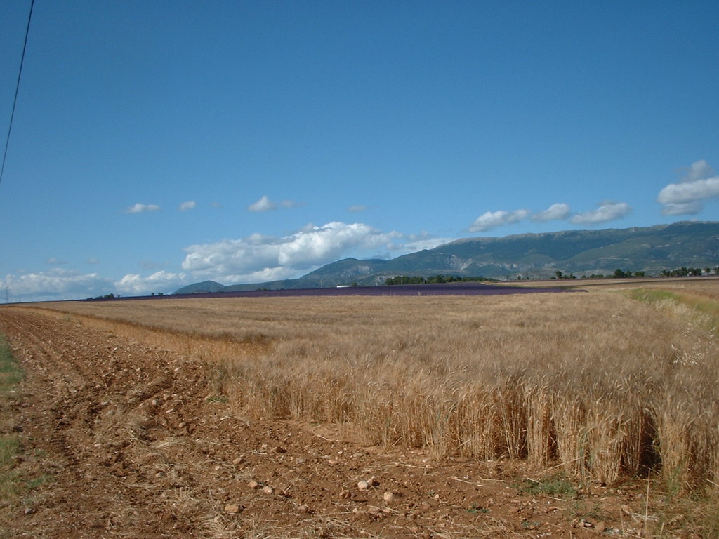 Le plateau de Valensole, en haute Provence, le blé et la lavande dessinent une mosaïque dans le paysage. |